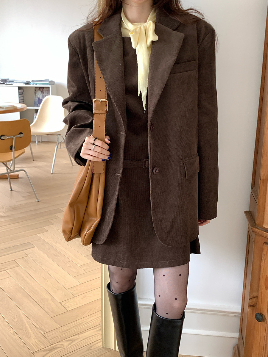 复古灯芯绒西装外套女秋冬2025新款韩系百搭高级感休闲西服上衣 - 阿里巴巴