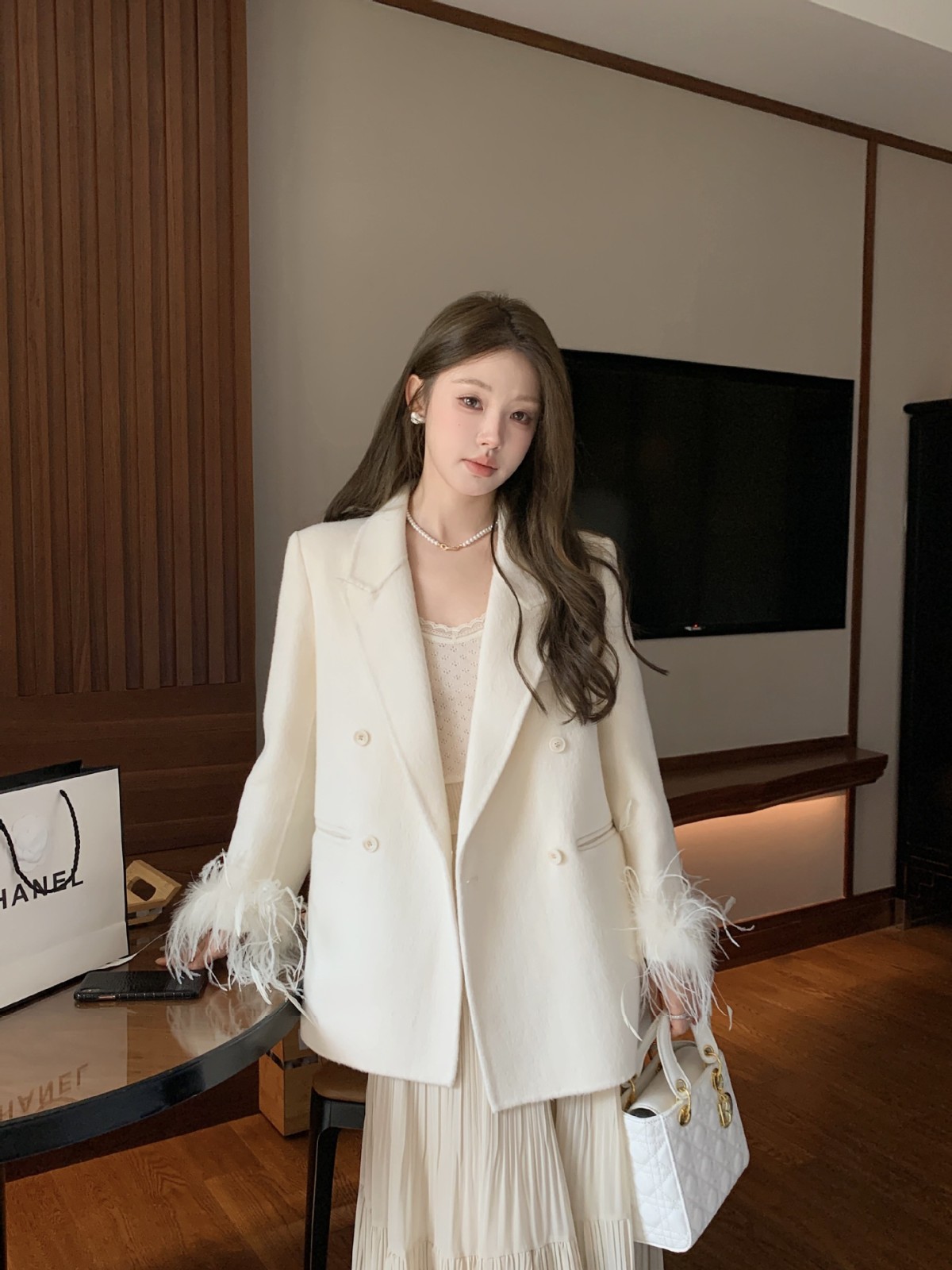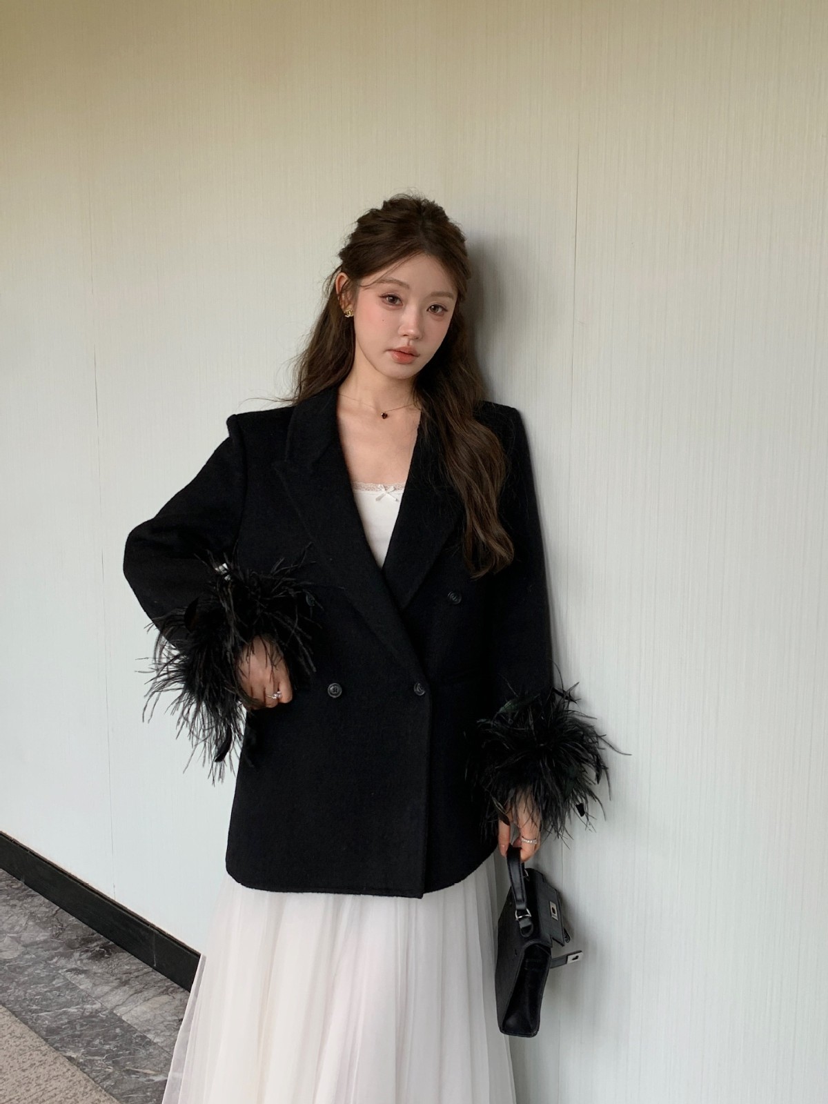 2025秋冬新款双面羊毛大衣韩版小西装时尚设计款毛呢外套现货