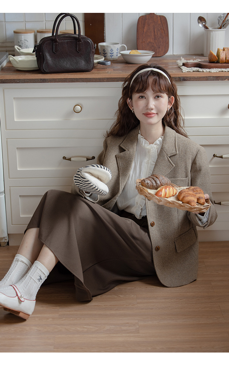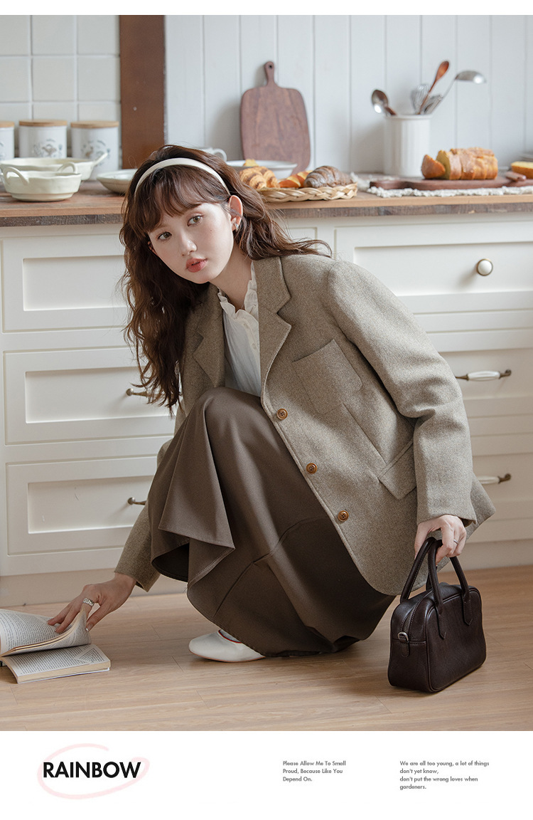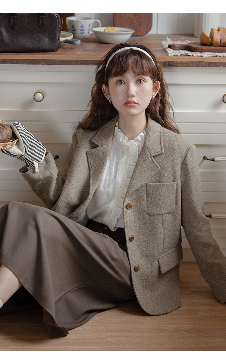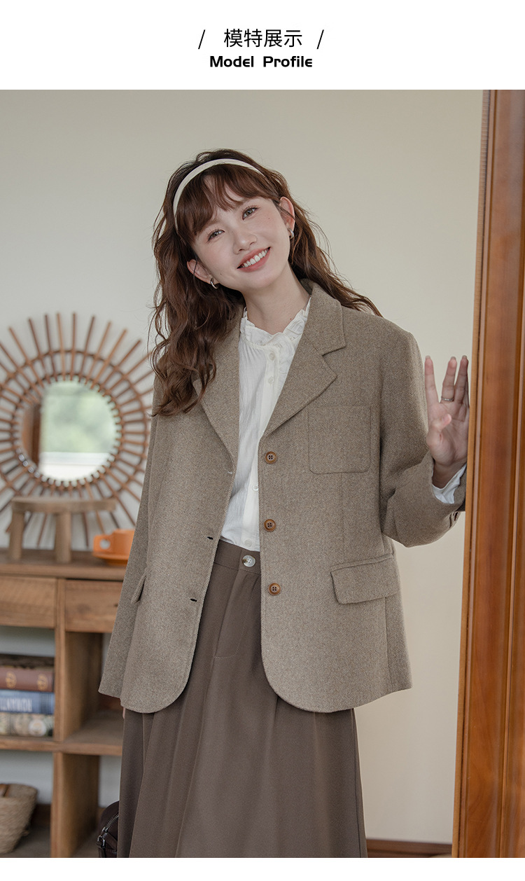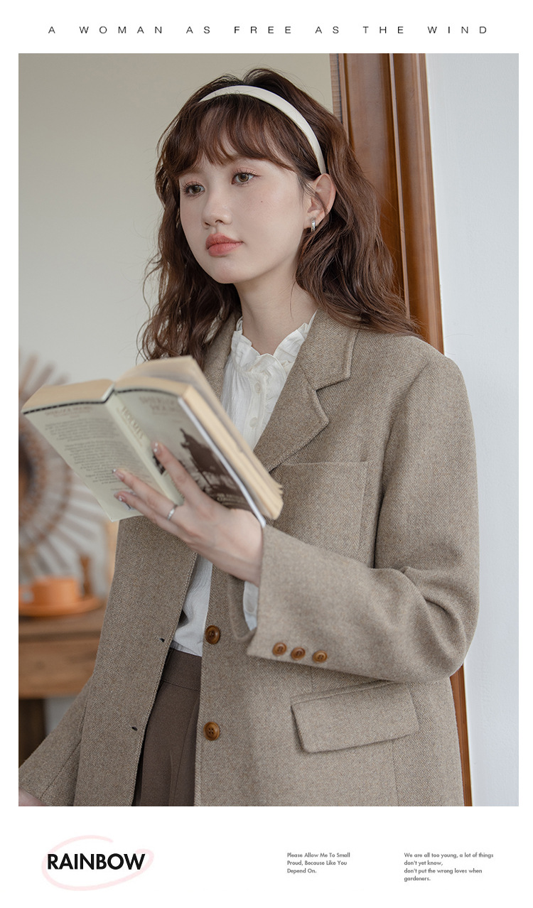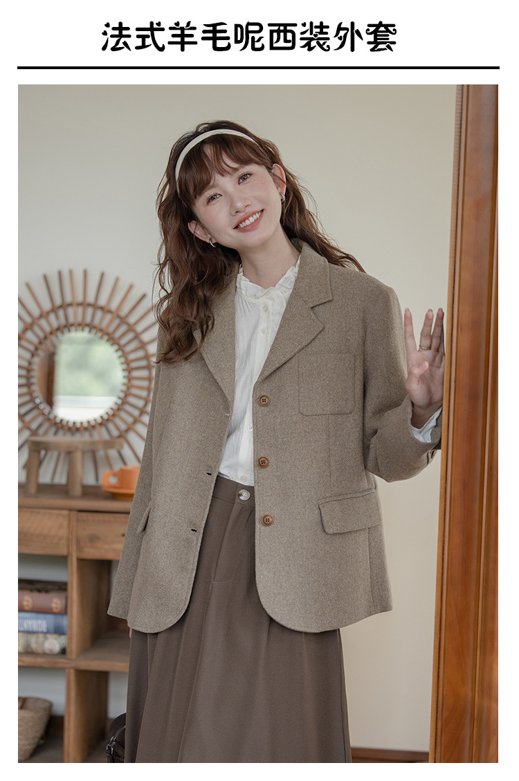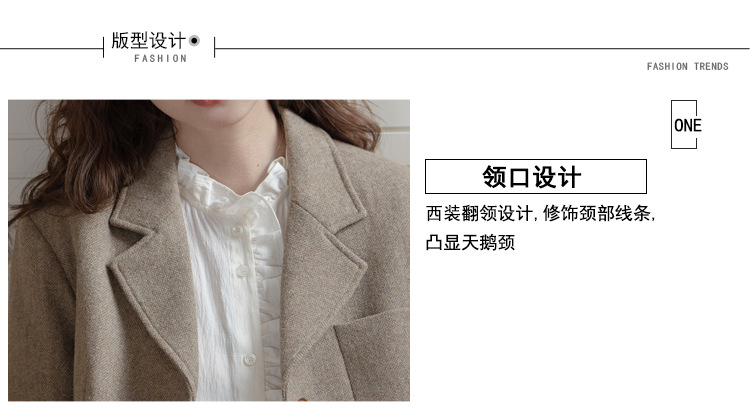 2025秋冬新款复古休闲毛呢西装外套女小个子宽松显瘦小西服