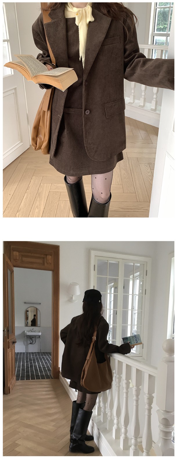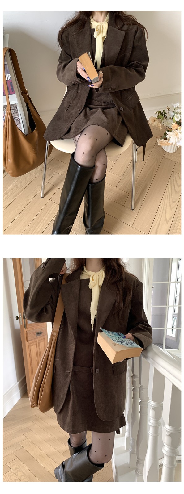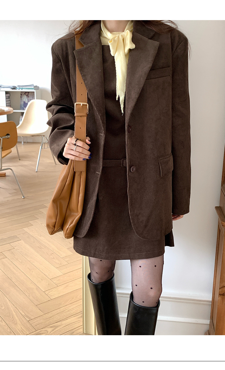 复古灯芯绒西装外套女秋冬2025新款韩系百搭高级感休闲西服上衣 - 阿里巴巴